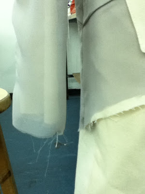 Tomorrow I have my first fitting with a model...So after some long nights, battling with myself over why I chose to sew an entire jacket from chiffon (explanation to follow)....here's what we have so far.